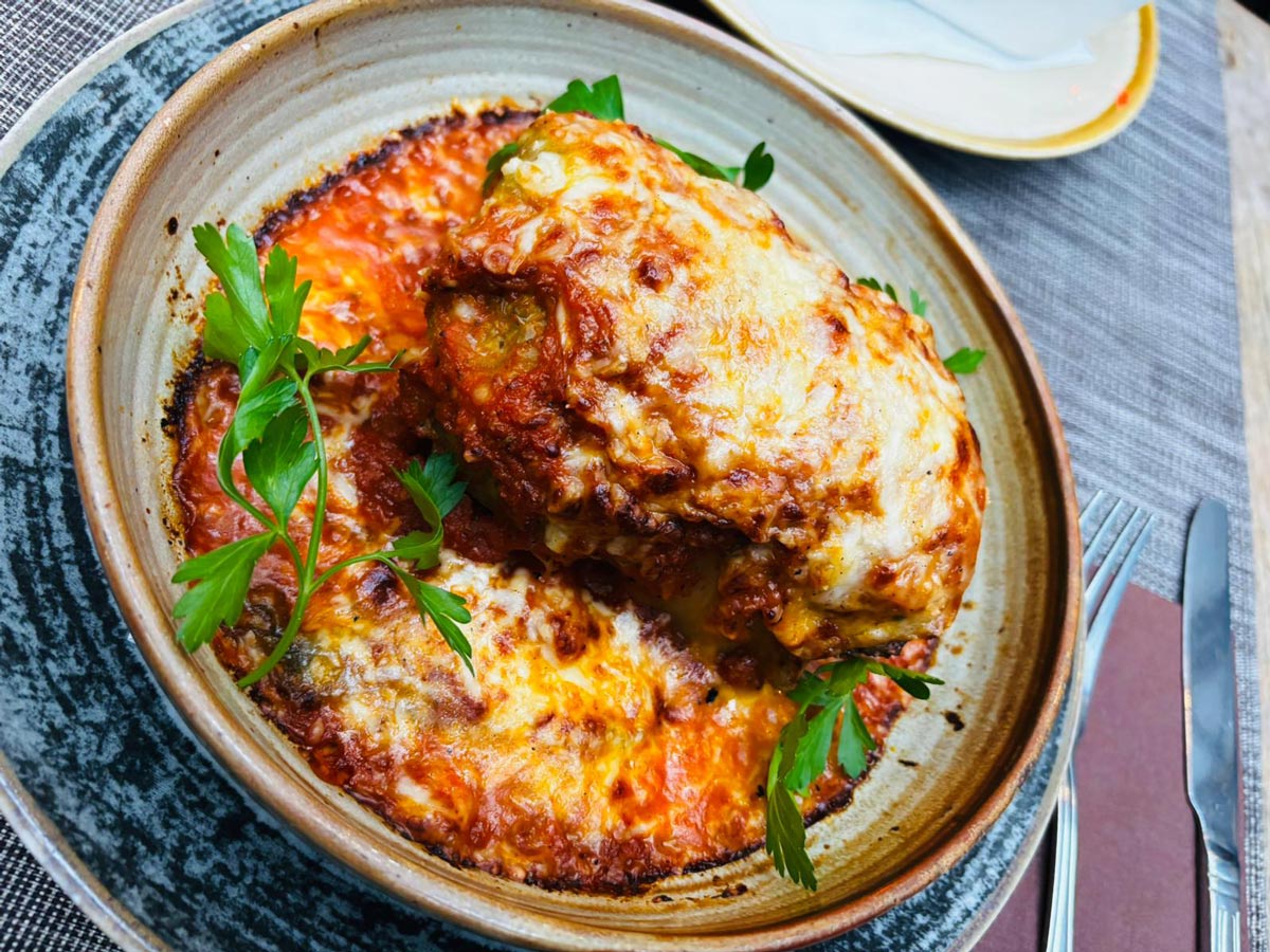 Côte d’agneau cuite à basse température, laquée, jus de viande au romarin, choux de Bruxelles caramélisés et gratin dauphinois